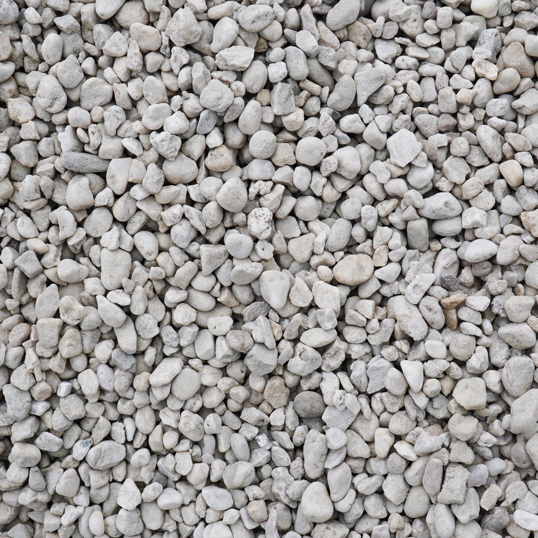 Remount Landscape Supplies offers 15mm Semi-Smooth White Calder Pebbles featuring warm white tones with subtle flecks of grey. These rounded pebbles are one of our most popular decorative stone options, valued for their clean appearance and versatility.